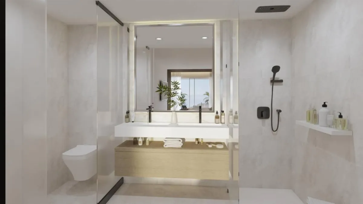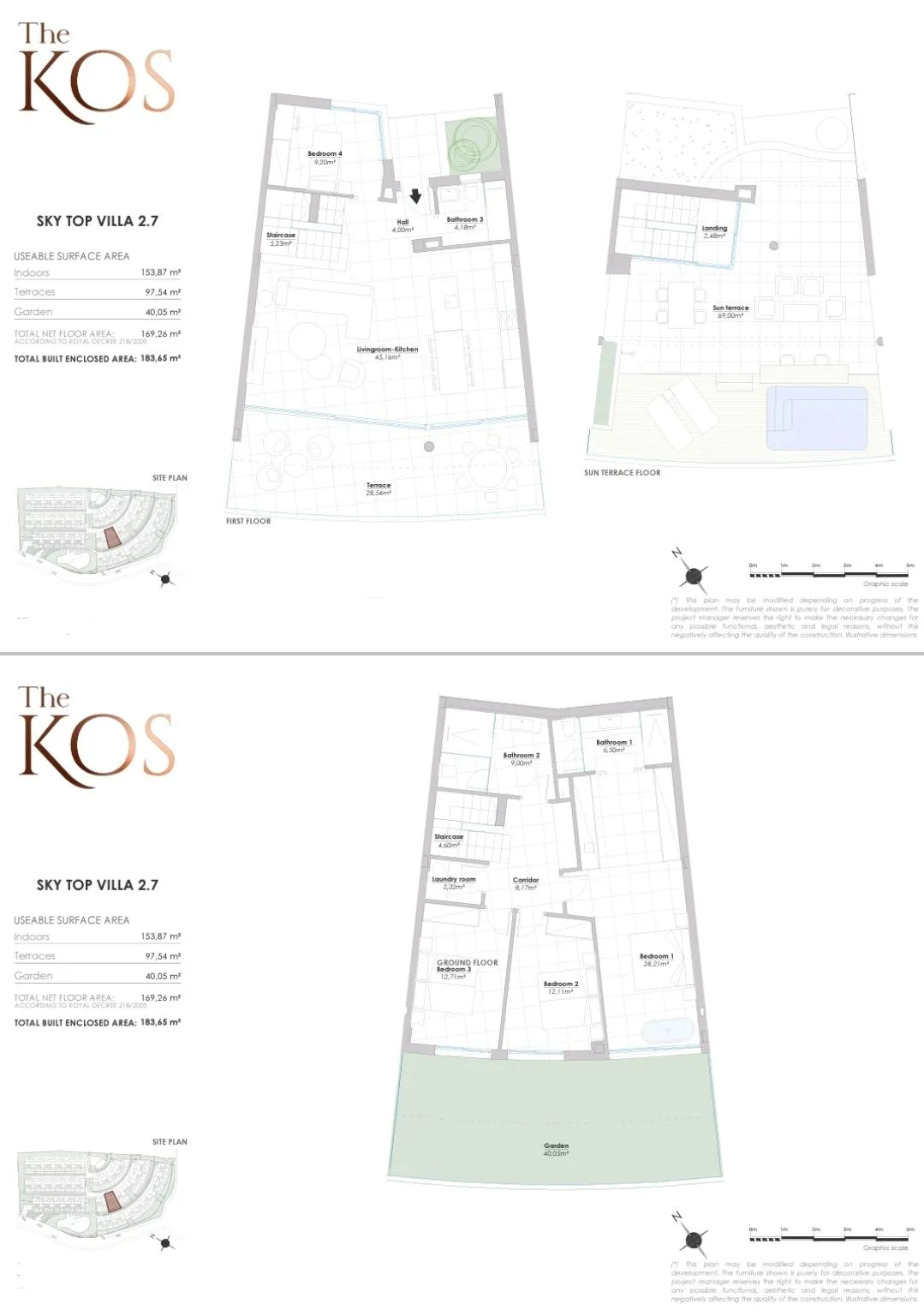 Sky Top Villas with 3 and 4 bedrooms, divided into ground floor, first floor and solarium. Bedrooms with spacious terraces allow you to enjoy the sunny surroundings of the Costa del Sol. Each property has a private swimming pool on the solarium floor, where you can enjoy the hours of sunshine. Four floors high and south-west facing, for panoramic views of the Mediterranean.